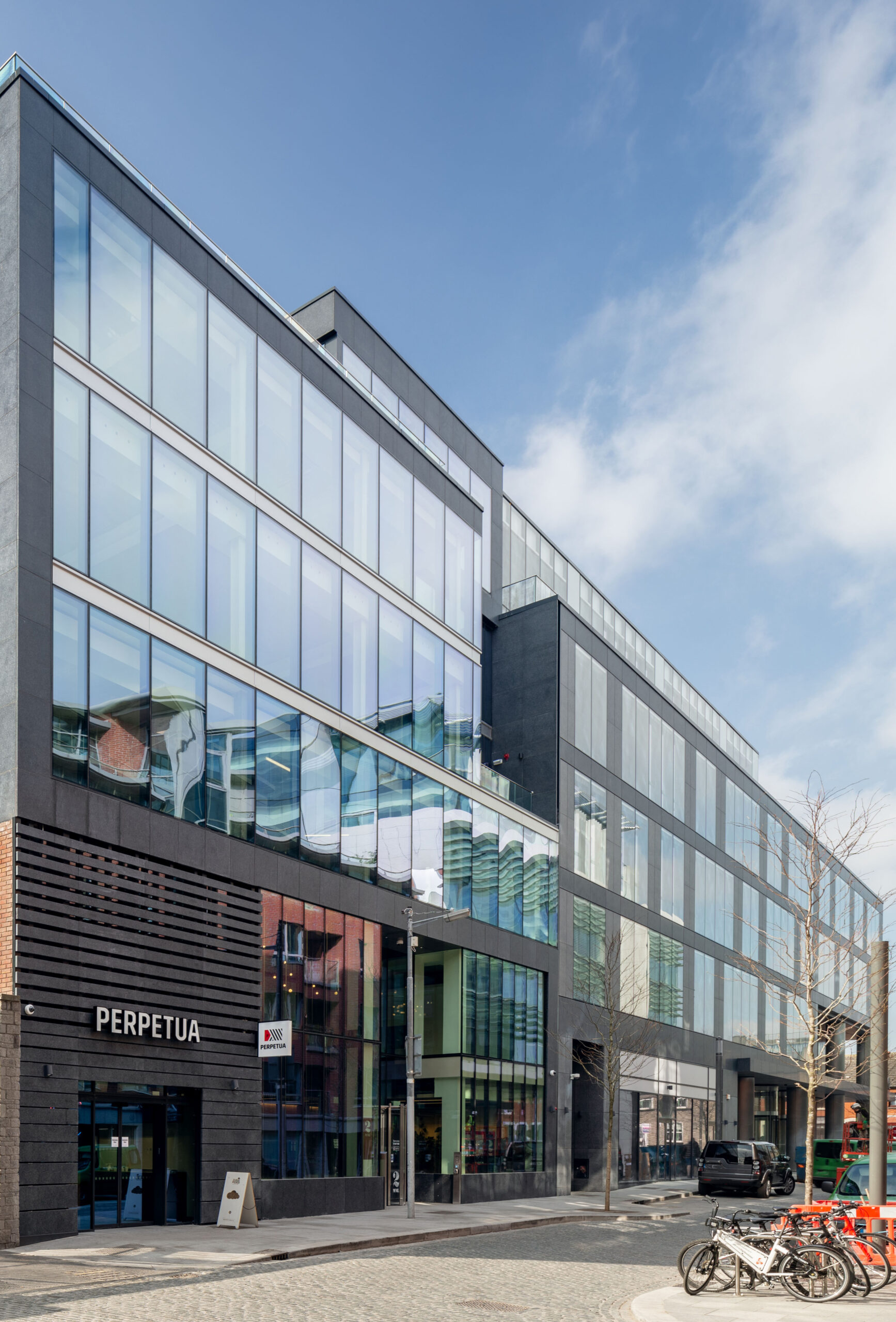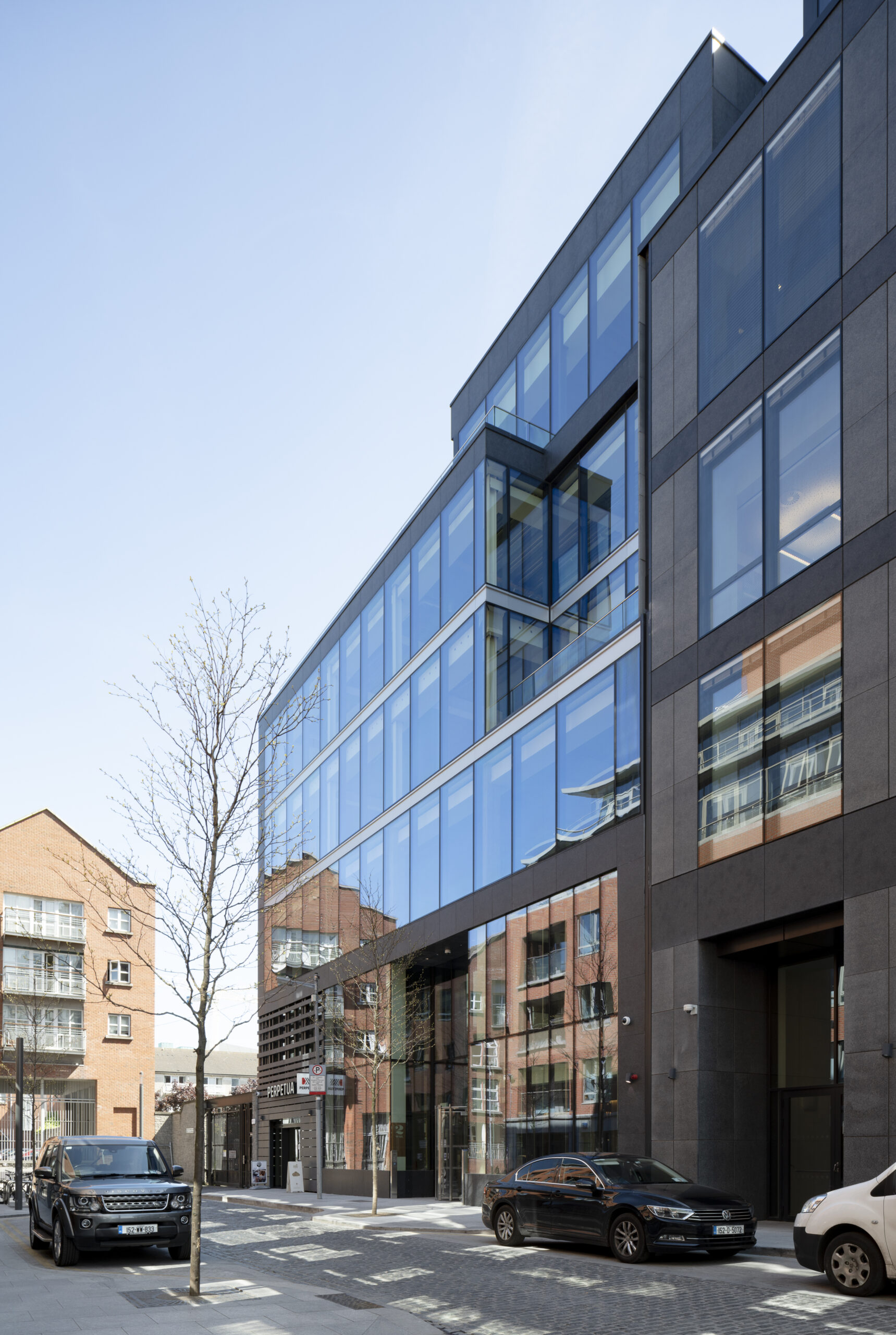 Following MOLA Architecture’s delivery of 1 Windmill Lane, the practice was commissioned to design and repurpose 2 Windmill Lane, conceived as the younger and more expressive counterpart to its larger neighbour. Formerly known as the Hanover Building, the existing five-storey structure was remodelled and extended as part of an ambitious adaptive reuse project to provide 9,300sqm of Grade A office accommodation over six levels, together with 1,100sqm of gym space at ground floor. The inclusion of the gym reflects a broader ambition for the Windmill Quarter to operate as a mixed-use campus that supports wellbeing and daily life.