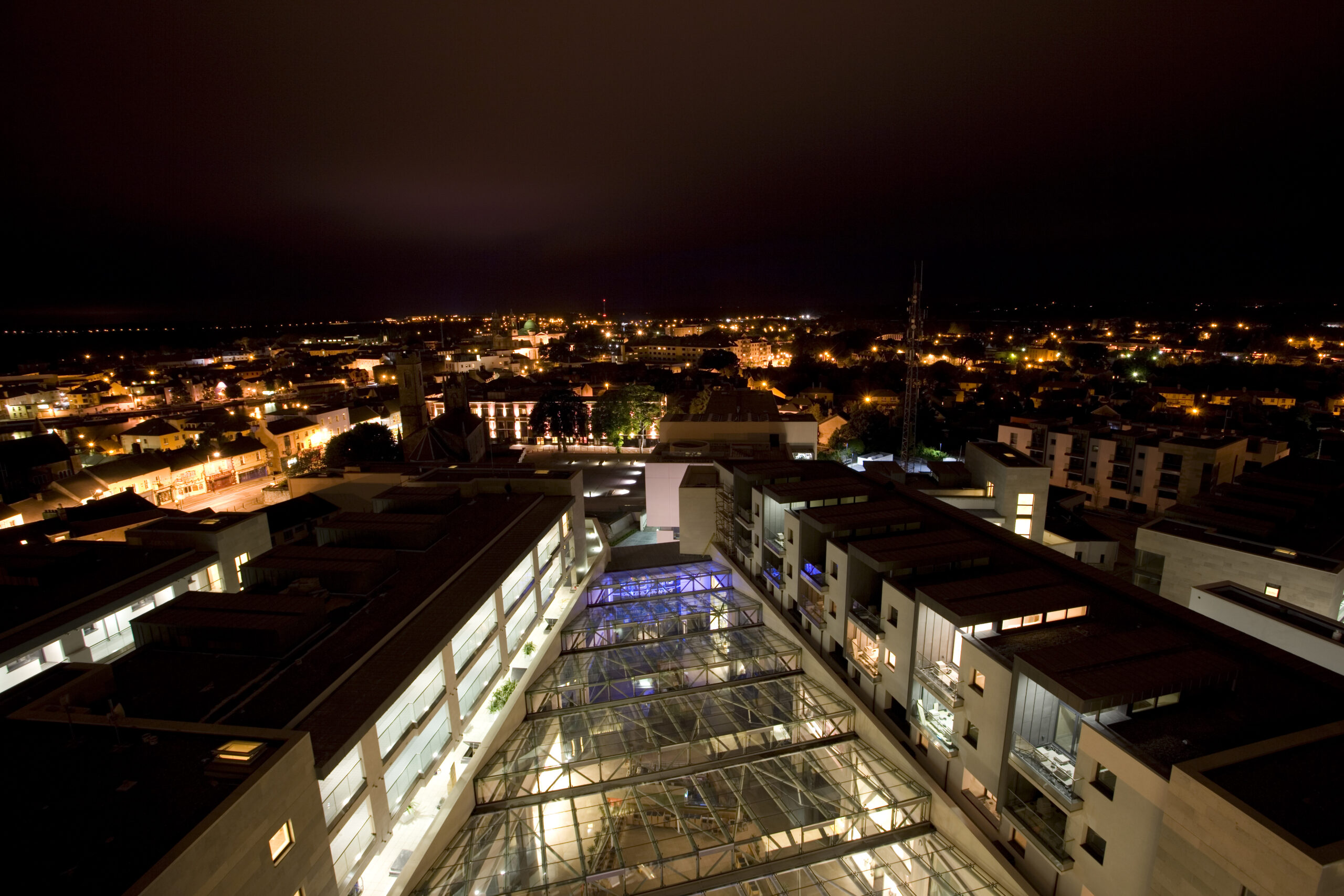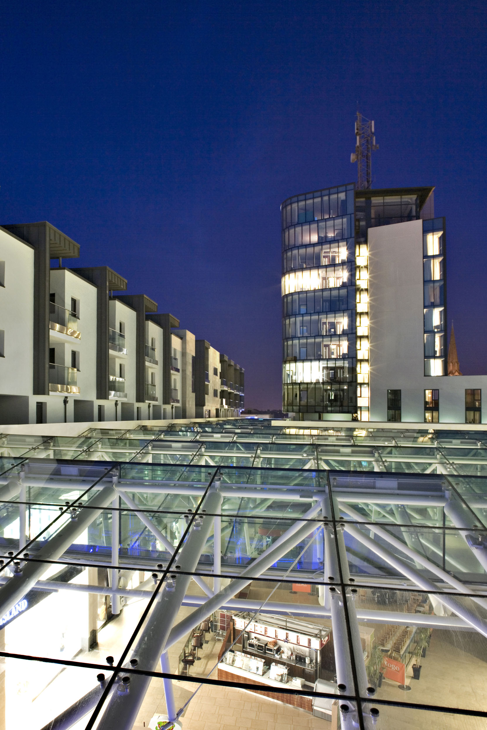 Athlone Town Centre is a landmark mixed-use regeneration project that redefines the core of Athlone, stitching the historic town centre to a new quarter of retail, residential, leisure and civic uses. Located on a 2.9-hectare site close to the River Shannon, the development delivers approximately 108,390sqm of built form including 66 retail units, 148 apartments, five restaurants and a café, an 11-storey 167-bed four-star hotel, a covered street and public square, a crèche and 1,140 car parking spaces.